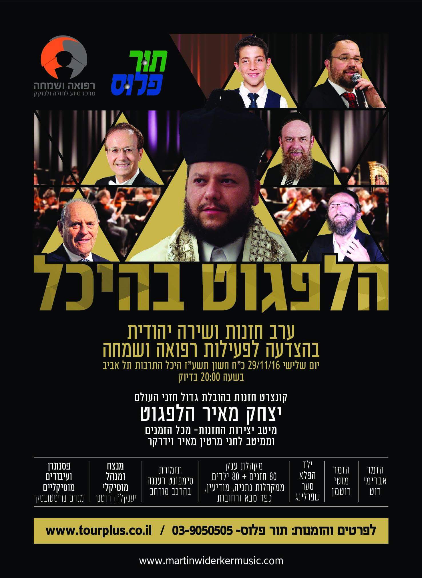 בקונצרט תושמענה מיטב יצירות החזנות מכל הזמנים ומיטב לחני המלחין מרטין מאיר וידרקר שיכבד אותנו בנוכחותו.